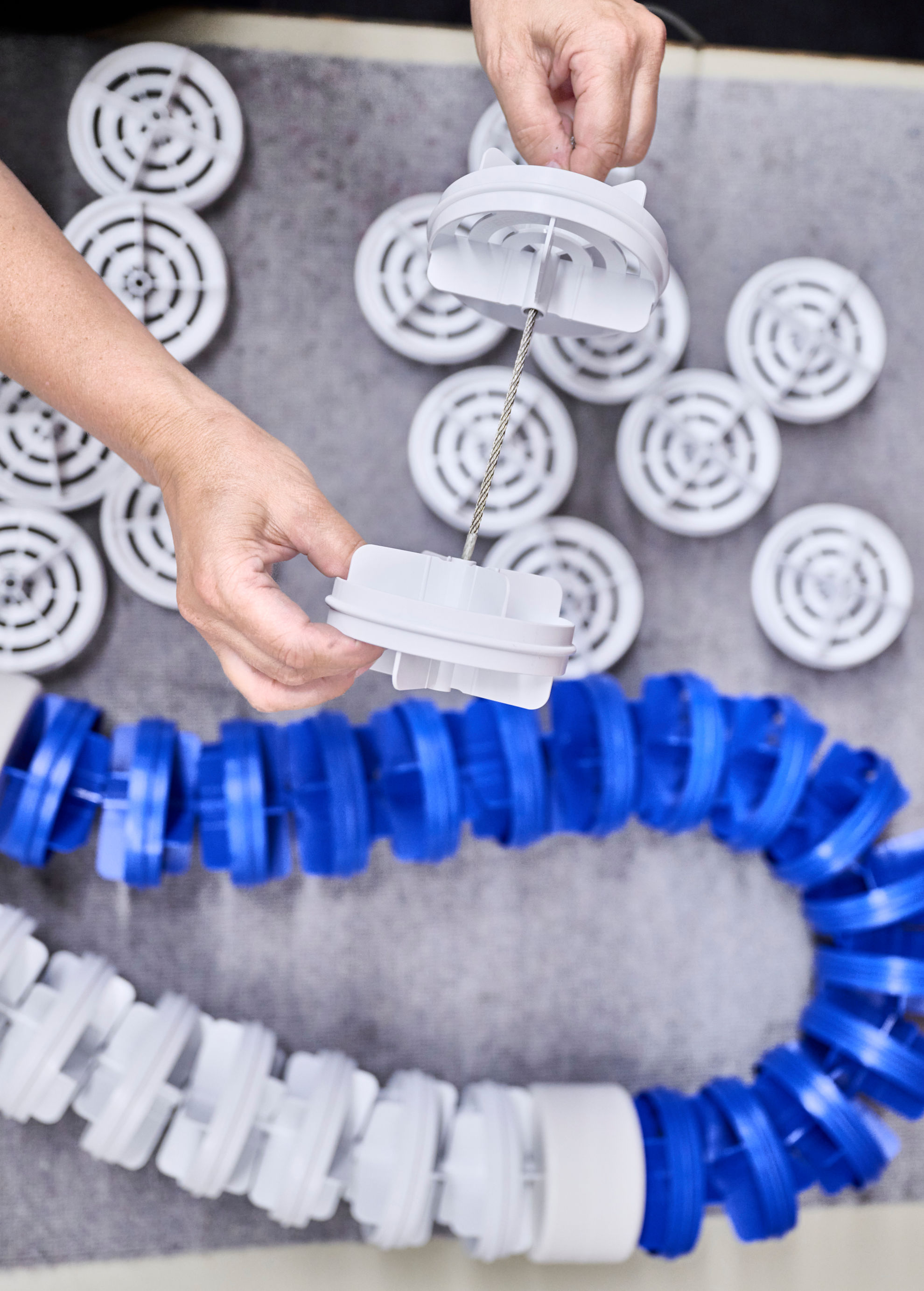 Or, le rôle joué par l’assortiment de cordes flottantes proposé par Weibel tient ici l’avant de la scène. Car il a fait ses preuves dans la compétition comme dans la natation au quotidien.